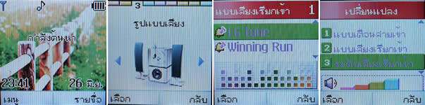 - รูปแบบเสียง : เสียงเตือนสายเข้า จะเตือนสั่นพร้อมไฟกระพริบตามจังหวะเพลงนั้นๆ และในหน้าจอเลือกเพลงริงโทนจะมีอีควอไลเซอร์แสดงขึ้นประกอบไปด้วย โดยในเครื่องจะมีริงโทนให้เลือกทั้งหมด เพลง และสามารถดาวน์โหลดเพิ่มเติมได้