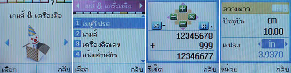 - เกมส์ & เครื่องมือ : ตั้งเมนูโปรดหรือเมนูที่ใช้บ่อยได้ 10 รายการ , เกมส์ในเครื่อง 2 แบบ (Halloween fever และ Active in life) , เครื่องคิดเลข , เครื่องแปลงหน่วย เปรียบเทียบมาตรวัด 4 แบบ (ความยาว/พื้นที่/น้ำหนัก/ระดับเสียง) , เทียบเวลาได้ 66 ประเทศทั่วโลก (World Clock) และ บันทึกเสียง (Voice memo) นาน 19 วินาทีต่อการบันทึกเสียงครั้ง