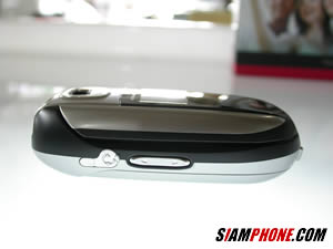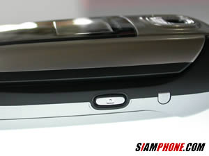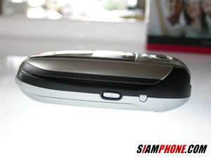 ถัดมาทางด้านขวาเริ่มจากด้านบนเป็นจุกยางกันฝุ่นปิดช่องเสียบสาย handfree ถัดลงมาเป็นปุ่มเพิ่ม - ลดระดับเสียง และในขณะอยู่ในโหมดพร้อมถ่ายภาพใช้ในการซูมภาพ ด้านล่างเป็นพอร์ตสำหรับเสียบสายชาร์ตแบตเตอร์รี่ และสายดาต้าลิงค์สำหรับโอนถ่ายข้อมูลระหว่างคอมพิวเตอร์และมือถือ