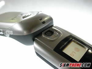 * ข้อมูลจากการใช้งาน ในส่วนของฟังก์ชั่นต่างๆ ภายในตัวเครื่องนั้นเรียกได้ว่ามีความแตกต่างกันเพียงน้อยนิด ข้อแตกต่างที่เห็นเด่นชัดคงต้องยกให้กับหน้าจอด้านนอกเท่านั้น แต่อย่างไรก็ตาม การทำหน้าที่ยังคงเหมือนกันคือแสดงข้อมูลทั่วไป ไม่ว่าจะเป็นเวลา วันที่ ระดับและสถานะของสัญญาณรวมถึงแบตเตอร์รี่ รวมถึงใช้เป็นหน้าจอสำหรับถ่ายรูปตัวเอง สำหรับหน่วยความจำแม้จะมากน้อยห่างกันอยู่ถึง 3 MB แต่ก็ถ่ายภาพได้ในปริมาณเท่ากันคือ สูงสุด 900 ภาพ ในเรื่องของระยะเวลาการรอสาย นับว่าทำได้น่าประทับใจมากทีเดียว เพราะจากการลองใช้งานทั้งสองตัว รอรับสายได้นานราวๆ 3 วัน ซึ่งในขณะนั้นมีการใช้งานสนทนาอยู่ตลอด เสียงสนทนาที่ได้รับฟังก็มีความชัดเจนทั้งต้นสายและปลายสายครับ