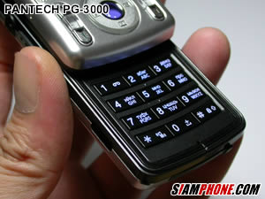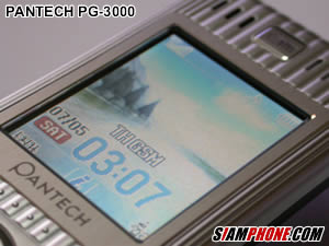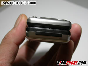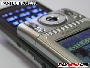แพนเทค PG-3000 - ตัวเครื่องฝาสไลด์ขึ้น-ลง ขนาด 87 x 42 x 22 มิลลิเมตร น้ำหนัก 99.6 กรัม หน้าจอ TFT-LCD 1.8 นิ้ว แสดงผล 262,144 สี ความละเอียด 128x160 พิกเซล