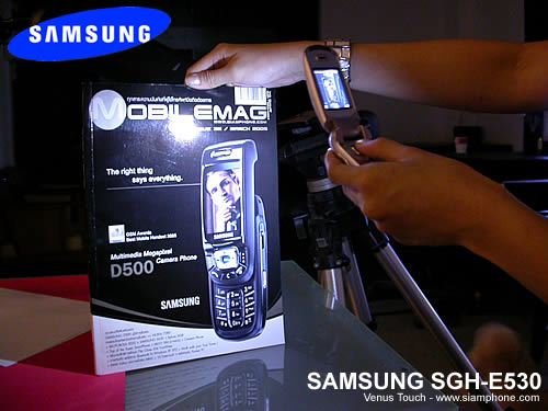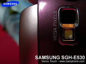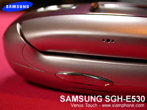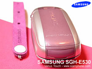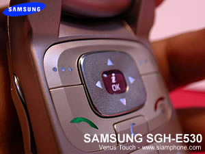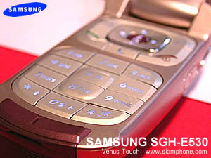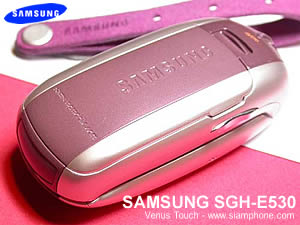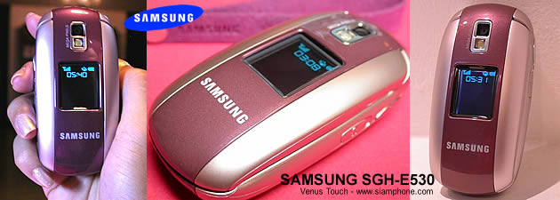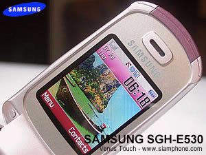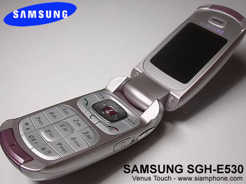 ซัมซุง SGH-E530 - ตัวเครื่องถูกออกแบบมาอย่างดี รูปทรงแบบฝาพับ ทูโทนสองสีตัดกันตามแนวตั้ง ตัวเครื่องที่ได้นำมาทดสอบเป็นสีม่วงตัดกับสีเงินดูสวยแปลกตา จอด้านนอก OLED 65,000 สี ขนาด 64 x 80 พิกเซล สามารถแสดงรูปขณะถ่ายถ่ายภาพตัวเอง (Mirror) และในโหมด Standby แสดงเวลาปัจจุบัน ระดับแบตเตอรี่ + สัญญาณ สามารถนำวอลเปเปอร์หรือรูปถ่ายมาแสดงที่หน้าจอด้านนอกได้