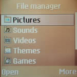 File Manager - ช่วยให้ผู้ใช้งานจัดการไฟล์ต่างๆ ภายในตัวเครื่องได้สะดวกมากขึ้น ภายในประกอบด้วยโฟลเดอร์ต่างๆ มากมาย ไม่ว่าจะเป็น โฟลเดอร์ภาพ เสียง วีดีโอ ธีม เกม โปรแกรมจาวา และอื่นๆ โดยจะมีคำสั่งเพิ่มเติมให้เลือกส่งข้อมูลเหล่านี้ผ่านทาง IrDA หรือทาง E-mail ได้ทันที คัดลอกหรือย้ายไฟล์ที่มีอยู่เดิมไปยังโฟลเดอร์อื่นหรือสร้างโฟลเดอร์ใหม่ไว้เก็บโดยเฉพาะ ทั้งนี้ยังสามารถดาวโหลดเพิ่มเติมผ่านทาง GPRS ได้อย่างรวดเร็ว