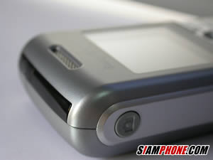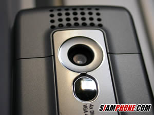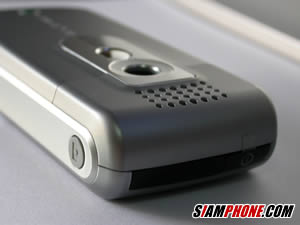 ทางฝั่งซ้ายของเครื่องจะมีปุ่มลัดสำหรับเรียกใช้งานกล้องถ่ายรูป (วิธีใช้ให้กดปุ่มค้างไว้ประมาณ 1-2 วินาที) ถัดมาในส่วนของด้านหลังตัวเครื่องด้านบนเป็นลำโพงสำหรับเสียงเรียกเข้าแบบ Polyphonic 40 chord รองรับไฟล์เสียง MP3, midi ถัดลงมาเป็นเซลรับภาพ CMOS ถ่ายรูปสูงสุดที่ระดับ VGA หรือ 640x480 พิกเซล พร้อมกันนี้ยังมี Mirror ไว้สำหรับใช้ถ่ายรูปตัวเอง และมีหน่วยความจำในเครื่องรวมทั้งหมด 12 MB