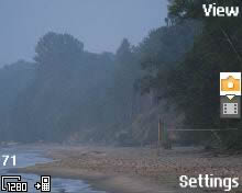 ปุ่มสายวิดีโอที่พร้อมโทรทันที* โดยสามารถเห็นผู้ที่คุณกำลังคุยด้วย และเขาก็สามารถเห็นคุณได้ ระหว่างการโทร คุณสามารถเริ่มและหยุดกล้องวิดีโอได้ตามต้องการ และสามารถควบคุมสิ่งที่บุคคลที่ปลายอีกด้านหนึ่งของสายจะมองเห็นได้ * ระบบวีดีโอโฟน ขึ้นอยู่กับผู้ให้บริการเครือข่าย (ยังไม่รองรับในประเทศไทย) ปุ่มล็อกฝาปิดด้านหลัง ภายในมีช่องใส่ซิมการ์ด และ แบตเตอรี่ 900 mAh ให้คุณเปิดรอรับสาย พร้อมใช้งานโทรศัพท์ได้นานหลายวัน ด้านหลัง - กล้องดิจิตอลความละเอียด 1.3 ล้านพิกเซล+แฟลชในตัวที่ถูกออกแบบมาให้ใช้งานกล้องดิจิตอลได้สะดวกที่สุด ฝาเปิด-ปิดเลนส์แบบแอกทีฟ สามารถให้คุณจับภาพได้ทันทีเมื่อเปิดฝา หากต้องการสลับระหว่างโหมดกล้องดิจิตอลและโหมดวิดีโอ ก็เพียงผลักจอยสติ๊กขึ้นหรือลงเท่านั้น
