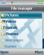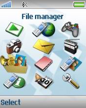 File manager - เมนูการจัดการรูปภาพ วีดีโอ เสียง ธีม หน้าเว็บเพจที่บันทึกไว้ เกมส์ และแอพพลิเคชั่น ผู้ใช้สามารถดู แก้ไขและลบข้อมูลได้