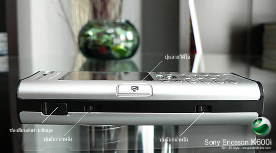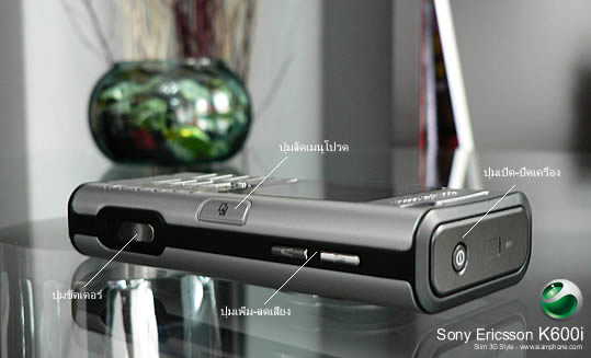 ปุ่มควบคุม Joystick - สำหรับเลือกเมนู บริเวณด้านล่างหน้าจอ ช่วยให้คุณมีทางเลือกที่หลากหลาย ขึ้นอยู่กับว่าคุณกำลังทำอะไรด้วย K600i แผงปุ่มตัวเลข เรียบเสมอกับผิวตัวเครื่อง พร้อม QuickShare™ ให้คุณส่งภาพผ่านข้อความมัลติมีเดียเพียงคลิกเดียว ด้านข้าง - ปุ่มเพิ่ม-ลดระดับเสียง และ ปุ่มชัตเตอร์ถ่ายภาพ สะดวกเมื่อเข้าสู่โหมดถ่ายภาพ พร้อมปุ่มลัดสองฝั่งซ้าย-ขวา ให้คุณเลือกใช้งานเมนูโปรดแบบทันใจ โดยสามารถกำหนดเพิ่มเติมได้ตามใจต้องการ
