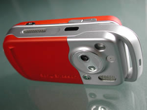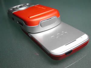 ด้านหลัง - มุมบนขวาจะเห็นลำโพงเสียงสำหรับฟังเพลง ด้านซ้ายจะเป็นกรอบวงกลม ที่มีเลนส์กล้องดิจิตอลกับ Mirror อยู่ด้านใน มุมบนซ้ายจะเป็นไฟแฟลช ส่วนล่างจะมีแถบนูนขึ้นมาเป็นแนวนอนสำหรับใช้เลื่อนฝาหลังเพื่อถอดแบตเตอรี่ และซิมการ์ด