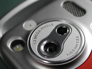 ด้านซ้ายของเครื่อง - ตรงส่วนหน้าจอจะมีปุ่มปรับระดับเสียง และปุ่มชัตเตอร์ ส่วนตัวเครื่องจะมีอินฟราเรดพอร์ต และลำโพงเสียง