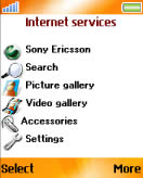 บริการอินเตอร์เน็ต - เมนูใช้งานและตั้งค่าอินเตอร์เน็ตผ่าน WAP ซึ่งมีรายการให้เลือกดาวน์โหลดภาพและวีดีโอผ่าน WAP ด้วย