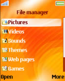 ตัวจัดการไฟล์ - เมนูการจัดการรูปภาพ วีดีโอ เสียง ธีม หน้าเว็บเพจที่บันทึกไว้ เกมส์ และโปรแกรม ผู้ใช้สามารถดู แก้ไขและลบข้อมูลได้