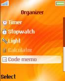 ออร์กาไนเซอร์ - เมนูนาฬิกาปลุก โปรแกรม (สามารถติดตั้งเพิ่มได้) ปฏิทิน บันทึกช่วยจำ นาฬิกาจับเวลา ไฟฉาย เครื่องคิดเลข และเครื่องบันทึกรหัสประจำตัวต่าง ๆ ที่สามารถตั้งรหัสป้องกันผู้อื่นมาเปิดดู