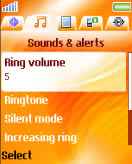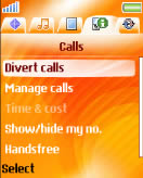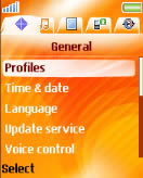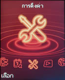 เมนูหลักแสดงผลเป็นรูปไอคอน วางเรียบแบบ Matrix 4 x 3 (4 แถว 3 คอลัมน์) รวม 12 เมนู การแสดงผลของเมนูอาจแตกต่างกันไปตามธีมที่ใช้ด้วย