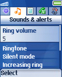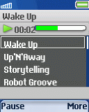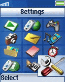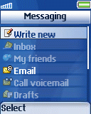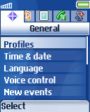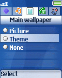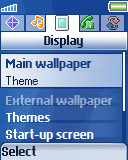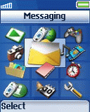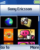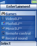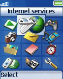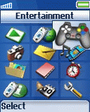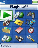 เมนูแสดงผลด้วยภาพไอคอนวางเรียงแบบตาราง 4 x 3 (4 แถว 3 คอลัมน์) รวม 12 เมนูด้วยกัน PlayNow - เมนูดาวน์โหลดเพลงทันใจ ผ่านบริการ WAP-GPRS บริการอินเตอร์เน็ต - เมนูใช้งานและตั้งค่าอินเตอร์เน็ตผ่าน WAP ซึ่งมีรายการให้เลือกดาวน์โหลดภาพ วีดีโอ และดูอุปกรณ์เสริม ผ่าน WAP ด้วย