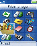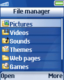 ตัวจัดการไฟล์ - เมนูการจัดการรูปภาพ วีดีโอ เสียง ธีม หน้าเว็บเพจที่บันทึกไว้ เกมส์ และโปรแกรม ผู้ใช้สามารถดู แก้ไขและลบข้อมูลได้
