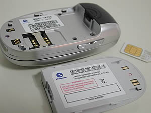 - ด้านล่าง มีจุกยางกันฝุ่นปิดช่องสำหรับเสียบสายชาร์ตแบตเตอร์รี่หรือสายดาต้าลิงค์ - ด้านหลัง ตรงกลางเป็นปุ่มล๊อคฝาหลังซึ่งใช้งานเป็นแบตเตอร์รี่ในตัว