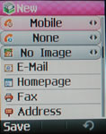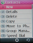 เข้าเมนูสมุดโทรศัพท์ (Contacts) ด้วยการกดปุ่มซอฟท์คีย์ขวา (เมื่ออยู่หน้าจอสแตนด์บาย) ทำให้เพิ่มความสะดวกในการจัดการสมุดโทรศัพท์ Message รับ-ส่งข้อความทั้งข้อความสั้นอย่าง sms และข้อความมัลติมีเดียเมสเซสหรือ mms อย่างเต็มรูปแบบ โดยตัวเครื่องมีเนื้อที่ว่างสำหรับบันทึกข้อมูลต่างๆ ของข้อความรวมทั้งสิ้น 220 ตำแหน่ง