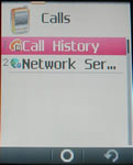 Calls ใช้สำหรับดูบันทึกรายการ สายโทรเข้า สายโทรออก สายที่ไม่ได้รับ เวลาที่มีการใช้สาย จำนวนการใช้งาน GPRS และเลือกตั้งค่าเครือข่ายที่ใช้งานได้จากเมนูนี้เช่นกัน