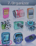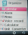 Organizer ปฏิทินแบบรายเดือน ตั้งนาฬิกาปลุก บันทึกช่วยจำ บันทึกเสียง เครื่องคิดเลข อัตราแปลงหน่วย นาฬิกาทั่วโลกและ นาฬิกาจับเวลา