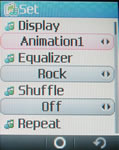 นอกจากนี้ยังตั้งค่าในส่วนอื่นๆ โดยเลือกที่ปุ่ม set หรือ ปุ่มซอฟคีย์ซ้ายของเครื่องในการตั้งค่า skin ซึ่งจุดเด่นพิเศษคือ เป็น skin ภาพแบบเคลื่อนไหว โดยมีตัวการ์ตูนเคลื่อนไหวประกอบเพลงที่กำลังฟัง ทั้งยังปรับตั้งอีควอไลเซอร์ได้ 4 แบบ ได้แก่ classic pop rock และ jazz