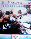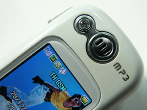 ด้านซ้ายของเครื่อง - มีปุ่ม MP3 ใช้เป็นปุ่มลัดเข้าเครื่องเล่นเพลง ถัดลงมาเป็นช่องเสียบการ์ด T-Flash ซึ่งมีที่ปิดกันฝุ่น