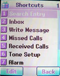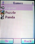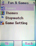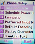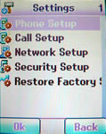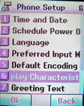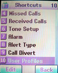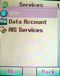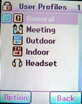 User Profiles - เมนูตั้งค่ารูปแบบเสียงเรียกเข้า มีให้เลือก 5 รูปแบบด้วยกัน Services - เมนูใ้ช้งานอินเตอร์เน็ตผ่าน WAP และการตั่งค่า GPRS รวมถึงเมนูจากผู้ให้บริการเครือข่ายโทรศัพท์