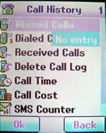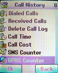 Call History - เมนูบันทึกรายการโทรออก/รับสาย/ไม่ได้รับสาย เวลาโทร ค่าโทร จำนวนข้อความและ GPRS