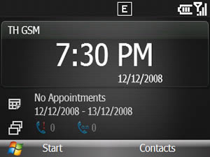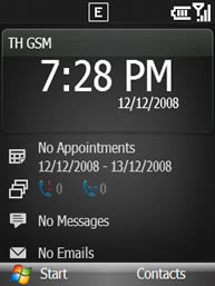 หน้าจอหลักของ HTC S740 มาพร้อมกับแอพพลิเคชั่น HTC Home โดยจะแสดงชื่อเครือข่ายพร้อมนาฬิกาบอกเวลา เมื่อกดเลื่อนลงมา ก็จะพบกับรายการนัดหมาย, แจ้งเตือนสายที่ไม่ได้รับ, ข้อความ, อีเมล์, รายงานสภาพอากาศ, บราวเซอร์, เครื่องเล่นเพลง, นาฬิกาปลุก, และ การตั้งค่าโปรไฟล์ หรือ รูปแบบเสียงเรียกเข้า