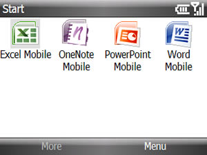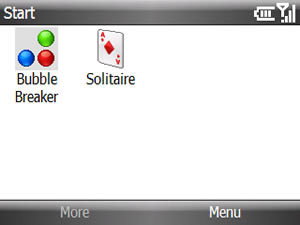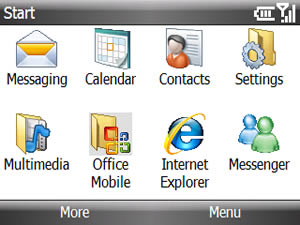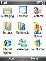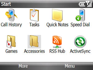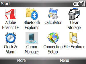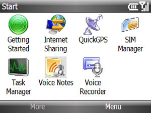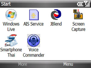เมื่อกด Start จะพบกับฟังก์ชั่นหรือโปรแกรมต่างๆ ให้เลือกใช้งาน สามารถกด More (ปุ่มซอฟต์) เพื่อดูโปรแกรมอื่นๆ ในหน้าจอถัดไป
