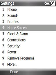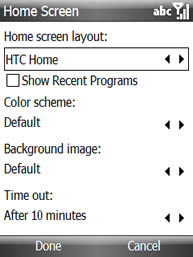 ผู้ใช้สามารถเข้าไปตั้งค่า HTC Home ได้โดยการกด Start เข้าไปที่ Settings เลือกรายการ Home Screen ผู้ใช้สามารถเปลี่ยนการแสดงผล ของหน้าจอหลัก ไปเป็นรูปแบบอื่นได้ รวมไปถึงการตั้งค่าโทนสี และ รูปภาพพื้นหลัง
