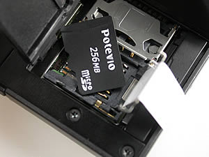 ถ้าจะใส่ซิมการ์ดกับการ์ดหน่วยความจำ microSD ต้องเลื่อนแผงแป้นพิมพ์ออกมาก่อน จึงจะพบกับถาดใส่ที่ซ่อนอยู่ซึ่งมีสลักล็อก Pull ให้เลื่อนสลักลงมา ถาดใส่ก็จะเปิดออก วิธีการใส่ microSD ให้ดึงแผ่นสีขาวขึ้นมาเพื่อกางถาดใส่การ์ดขึ้น จากนั้นสอด microSD ลงในถาด และกดถาดลงเช่นเดิม จึงจะสอดซิมการ์ดตามเข้าไปได้ ถาดใส่ซิมการ์ดสามารถดันเพื่อกางถาดขึ้นได้เล็กน้อย เพื่อให้สอดซิมการ์ดได้สะดวก