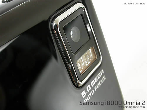 Camera Samsung i8000 Omnia 2 มาพร้อมกล้องถ่ยรูป ความละเอียด 5 ล้านพิกเซล ติดตั้งอยู่ด้านหลัง พร้อมไฟแฟลช 2 ดวง บันทึกได้ทั้งภาพนิ่ง และ วีดีโอ ส่วนเลนส์กล้องด้านหน้า มีไว้สำหรับสนทนาแบบวีดีโอคอลล์ ผ่านเครือข่าย 3G ด้านข้างของตัวเครื่องมีปุ่มทางลัดเข้าสู่โหมดกล้อง (ใช้กดบันทึกภาพในตัว) และ สามารถซูมภาพด้วยปุ่มปรับระดับเสียง (ซูมภาพสูงสุด 3 เท่า) สำหรับคุณสมบัติของกล้องถ่ายรูปในเครื่องที่ ได้ทดสอบกับเครื่องที่วางจำหน่ายจริงอาจมีความแตกต่างเล็กน้อยขึ้นอยู่กับการปรับปรุงเฟิร์มแวร์