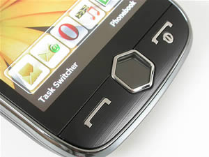 ใต้หน้าจอมีปุ่มโทรออก, ปุ่มเปิดเมนูหลักแบบ TouchWiz (ปุ่มรูปทรงกล่องสามมิติ) และ ปุ่มวางสาย (ใช้เป็นปุ่มเพาเวอร์ในตัว)
