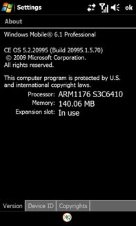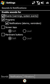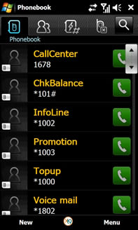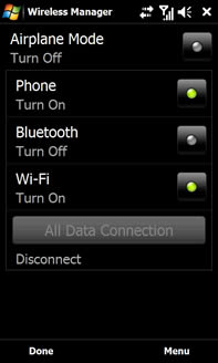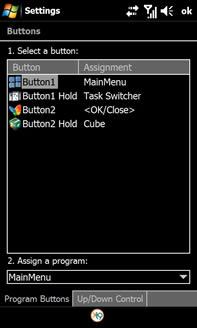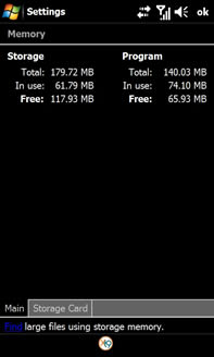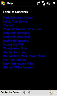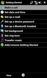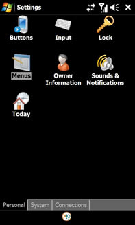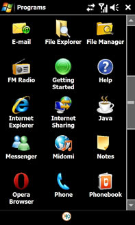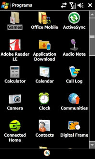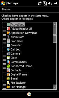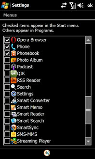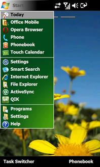 เมื่อย้อนกลับออกมาที่หน้าจอหลัก ให้แตะที่เมนู Start (มุมบนซ้าย) จะแสดงหน้าต่างเมนูแบบดั้งเดิมของระบบปฏิบัติการ Window Mobile ซึ่งจะแสดงรายชื่อโปรแกรมที่เข้าใช้งานล่าสุด, รายชื่อโปรแกรมที่กำหนดเป็นทางลัด, Programs และ Settings ผู้ใช้สามารถตั้งค่าโปรแกรม ให้เป็นทางลัดได้ โดยเข้าไปที่ Settings ที่หน้า Personal เลือกไอคอน Menus จากนั้นแตะที่กล่องหน้ารายชื่อฟังก์ชั่นที่ต้องการ กำหนดได้ 7 ฟังก์ชั่น ถ้าไม่มีการเลือกฟังก์ชั่นใดๆ เมนู Start จะแสดงรายชื่อโปรแกรมที่เข้าใช้งานล่าสุดขึ้นมาแทน
