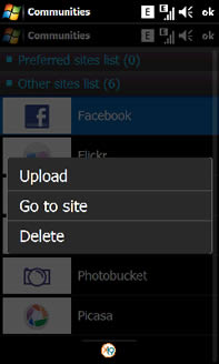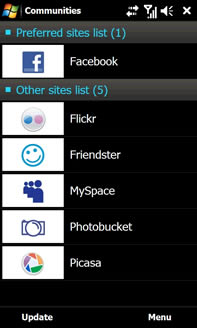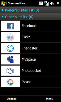 Communities แอพพลิเคชั่นสำหรับเชื่อมต่อสังคมออนไลน์ โดยรวมเว็บไซต์ประเภท Social network ยอดนิยมไว้ถึง 6 เว็บไซต์ ได้่แก่ Facebook, Flickr, Friendster, MySpace, Photobucket และ Picasa ช่วยให้ผู้ใช้สามารถอัพโหลดรูปภาพได้ทันที หรือเข้าไปชมหน้าเว็บไซต์ส่วนตัวของคุณ เพื่ออัพเดตเนื้อหา หรือติดตามความเคลื่อนไหวของเพื่อนๆ