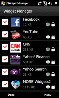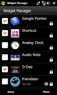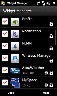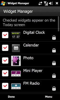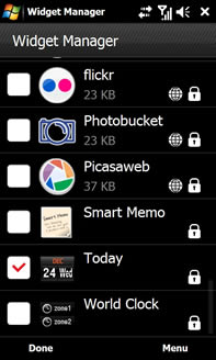 Samsung WidgetPlus ค่าเริ่มต้นเมื่อเปิดใช้งานครั้งแรก หน้าจอหลักหรือหน้าจอทูเดย์จะเปิดใช้งาน Samsung WidgetPlus ให้โดยอัตโนมัติ ซึ่งประกอบไปด้วย แถบวิดเจ็ตฝั่งซ้ายมือ กับ หน้าจอหลักที่เลื่อนได้ 3 หน้า แต่ละหน้าสามารถกำหนดรูปภาพพื้นหลังให้แตกต่างกันได้ และ วิดเจ็ตที่ดึงออกมาใช้ จะแสดงไม่เหมือนกันในแต่ล่ะหน้า คือ หน้าแรกอาจจะวางวิดเจ็ตเครื่องเล่นเพลง อีกหน้าอาจจะแสดงวิดเจ็ตปฏิทิน เพราะวิดเจ็ตที่ Samsung i8000 Omnia 2 มีมาให้ใช้สอยถึง 29 ฟังก์ชั่น และสามารถเลือกมาอยู่ในแถบวิดเจ็ตได้จากการตั้งค่าที่ไอคอน Widget Manager (ไอคอนบนสุดในแถบแสดงวิดเจ็ต) จะเลือกมาใส่ทั้ง 29 ฟังก์ชั่น หรือเลือกเฉพาะวิดเจ็ตที่ต้องการก็ได้