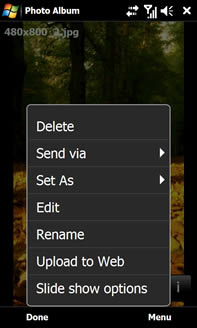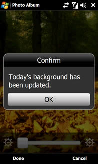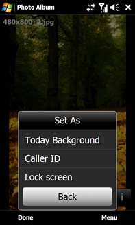ผู้ใช้สามารถทำรูปภาพที่ตัวเองต้องการมากำหนดเป็นรูปภาพพื้นหลังได้ โดยรูปภาพที่เหมาะสมควรใช้ความละเอียด 480 x 800 พิกเซล จากนั้นดาวน์โหลดไปใส่ในโทรศัพท์ จัดเก็บไว้ใน โฟลเดอร์ My Device / My Documents / My Pictures หากไม่จัดเก็บไว้ในโฟลเดอร์นี้ วิดเจ็ต Photo จะไม่แสดงรูปภาพ ต้องเข้าไปตั้งค่าเองจากเมนู Settings > Display and Light > Wallpaper หรือใช้โปรแกรม Photo Album กับ File Explorer ก็สามารถตั้งค่ารูปภาพพื้นหลังได้เช่นกัน