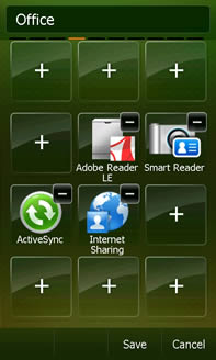 อย่างไรก็ตามโปรแกรมที่แสดงอยู่ในหน้าเมนูหลักทั้ง 4 สามารถลบหรือเพิ่มเติมได้อย่างอิสระ โดยการแตะที่ Edit ก็จะเข้าสู่การแก้ไขไอคอน สามารถเพิ่มไอคอนได้สูงสุด 12 ไอคอน ต่อ 1 หน้า นอกจากนี้ในฟังก์ชั่น Edit ยังสามารถเพิ่มหน้าของเมนูหลักได้อีก สุงสุด 10 หน้า รวมถึงการเปลี่ยนชื่อหน้าเมนูด้วย ส่วนธีมสีของเมนูหลักมีให้เลือก 2 โทนสี (สีเขียว/สีแดง) เข้าไปตั้งค่าได้ที่เมนู Settings เข้าปที่ Display and Light และ Main Menu เลือกธีมที่ต้องการ แล้วกดปุ่ม Done