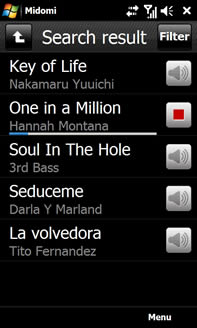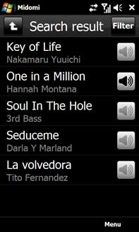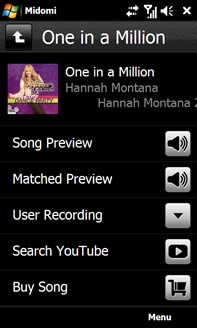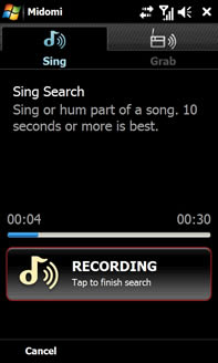Midomi โทรศัพท์มือถือของซัมซุงที่จัดอยู่ในกลุ่มมัลติมีเดียโฟน จะมีโปรแกรม Music Recognition ติดตั้งไว้เคียงคู่อยู่กับเครื่องเล่นเพลง หรือวิทยุ ใช้สำำหรับค้นหาข้อมูลเพลง โดยการบันทึกเสียงแล้วส่งไปยังเซิฟเวอร์ในอินเตอร์เน็ตเพื่อค้นหาข้อมูลเพลงมาให้ แต่สำหรับแอพพลิเคชั่น Midomi ได้พัฒนาความสามารถให้มากยิ่งขึ้น นอกจากจะบันทึกเสียงจากเพลงที่ได้ยินรอบข้างแล้ว ผู้ใช้ยังสามารถร้องเพลงด้วยเสียงตนเอง ก็สามารถค้นหาข้อมูลเพลงได้เช่นกัน หรือจะสลับไปโหมด Grab เพื่อบันทึกเสียงจากวิทยุ หรือโทรทัศน์