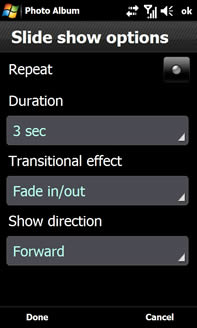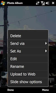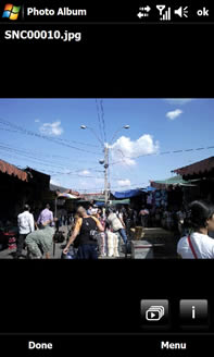 Photo Album โปรแกรมแสดงรูปภาพที่จัดเก็บไว้ในหน่วยความจำ แสดงอัลบั้มตามโฟลเดอร์ที่จัดเก็บ แสดงผลในแนวนอนอัตโนมัติ ตามการหมุนตัวเครื่อง สามารถเลื่อนชมรูปภาพถัดไปโดยการปัดนิ้วไปทางซ้ายหรือขวา มีระบบซูมหรือขยายภาพ เพียงแตะที่หน้าจอ 2 ครั้งติดกัน เมื่อรูปภาพถูกขยาย สามารถเลื่อนหรือ Pan รูปภาพได้ โดยการแตะนิ้วค้างไว้บนหน้าจอ แล้วลากดูในส่วนที่ต้องการ หากต้องการแสดงรูปภาพแบบเต็มหน้าจออีกครั้ง ให้แตะหน้าจอ 2 ครั้งติดต่อกัน เหมือนตอนทำการซูมภาพ