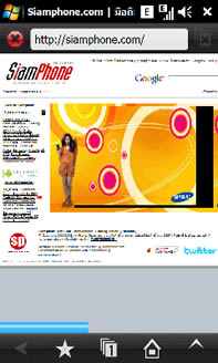 นอกจากนี้ Photo Album ยังมีฟังก์ชั่นแสดงรูปภาพแบบสไลด์โชว์พร้อมเล่นเพลงประกอบ กำหนดระยะเวลาแสดงแต่ละภาพได้ 3, 5, 10 วินาที มีเอฟเฟ็คระหว่างเปลี่ยนภาพ ให้เลือกใช้ 25 แบบ หรือกำหนดให้สุ่มเอฟเฟ็คอัตโนมัติ Browser Samsung i8000 Omnia 2 รองรับการเชื่อมต่อเครือข่าย GPRS, EDGE, 3G, HSDPA รวมไปถึง WiFi คุณจึงใช้งานอินเตอร์ได้เกือบทุกมุมโลก อีกทั้งเบราเซอร์อย่าง Internet Explorer ก็เป็นที่คุ้นเคยกันดีของผู้ใช้งานคอมพิวเตอร์ PC มีความสามารถในการซูม ปรับขนาดตัวอักษร บันทึกภาพจากเว็บไซต์ บุ๊คมาร์ค และ ดูประวัติเว็บไซต์ที่เข้าชม นอกจากนี้ยังรองรับเบราเซอร์ Opera Mobile รองรับเว็บไซต์แบบ Full HTML
