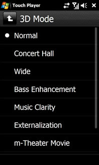 ในการฟังเพลงด้วย Touch Player ผู้ใช้สามารถปรับแต่งระบบเสียง DNSe ได้ 8 แบบ คือ Concert Hall, Wide, Bass Enhancement, Music Clarity, Externalization, m-Theater Movie, WoW HD และ CS-HP แต่จะเปิดใช้งานได้ก็ต่อเมื่อฟังผ่านชุดหูฟังเท่านั้น (ยกเว้นรูปแบบ Concert Hall) สำหรับเสียงอีควอไลเซอร์มีให้เลือกใช้ 5 แบบ คือ Rock, Jazz, Live, Classic และ Full Bass