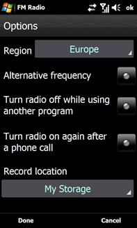 นอกจากนี้ยังมีโหมดเล่นเพลงแบบวนซ้ำ, สุ่มรายชื่อ, ปรับจังหวะการเล่นให้เร็วขึ้น หรือ ช้าลง ตั้งค่าเพลงที่กำลังเล่นเป็นเสียงเรียกเข้าทันที และ รองรับระบบการเชื่อมต่อกับ Connected Home (ระบบการเชื่อมต่อความบันเทิงภายในบ้านผ่านเทคโนโลยี DLNA) FM Radio รองรับสัญญาณวิทยุ ในระบบ FM ผ่านชุดหูฟัง ขนาดหัวต่อ 3.5 มิลลิเมตร เมื่อเข้าใช้โปรแกรมครั้งแรก ระับบจะสแกนหาคลื่นให้อัตโนมัติ และ จัดเก็บไว้ใน FM 1 Channels โดยคลื่นวิทยุที่พบ จะถูกเรียงเป็นรายการ แสดงตัวเลขของคลื่นความถี่ สะดวกในการเปิดฟังคลื่นที่ต้องการ โดยไม่ต้องกรอกหรือเปลี่ยนคลื่นด้วยตัวเอง ในหน้า FM 1 Channels จะมีปุ่ม Done ที่มุมล่างขวา เมื่อกดแล้วจะเข้าสู่หน้าตาเครื่องเล่นวิทยุ ซึ่งมีฟังก์ชั่นการค้นหาคลื่นวิทยุ จัดเก็บสถานีโปรด เปิดเสียงผ่านลำโพงตัวเครื่อง และ บันทึกเสียงจากรายการวิทยุ ในรูปแบบไฟล์ MP3