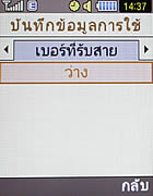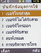 บันทึกข้อมูลการใช้ - เมนูบันทึกรายการโทรล่าสุด, เบอร์ที่ไม่ได้รับสาย, เบอร์ที่โทรออก และ เบอร์ที่รับสาย ในเมนูนี้สามารถกดตัวเลือกขึ้นมา