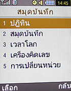 จากโหมดพร้อมใช้งานเข้าสู่เมนูหลักได้ด้วยการกดปุ่มกลางของปุ่มควบคุมทิศทาง หรือปุ่มซอฟต์คีย์ซ้าย เมนูหลักแสดงผลแบบตาราง 3 X 4