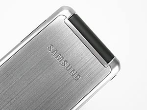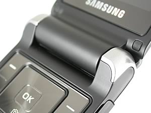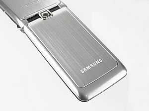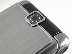 ด้านหน้า - ตัวเครื่องเป็นแบบสี่เหลี่ยมผืนผ้า ไม่มีจอแสดงผลภายนอก บริเวณข้อต่อฝาพับมีเลนส์กล้องดิจิตอล