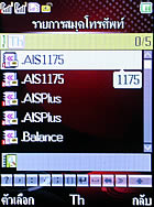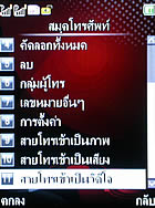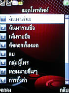 สมุดโทรศัพท์ - ค้นหาด่วน, ค้นหารายชื่อ, เพิ่มรายชื่อ, คัดลอกทั้งหมด,ลบ,กลุ่มผู้โทร, เลขหมายอื่นๆ, การตั้งค่า, สายโทรเข้าเป็นภาพ, สายโทรเข้าเป็นเสียง, สายโทรเข้าเป็นวิดีโอ