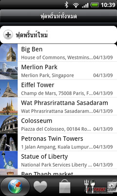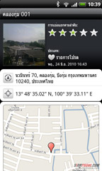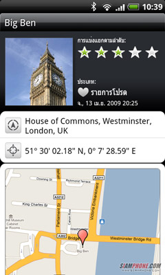 ในแต่ละสถานที่ ๆ ถูกบันทึกไว้จะมีข้อมูล ชื่อสถานที่ ระดับความชอบ ประเภทสถานที่ที่บันทึก ชื่อตำแหน่งสถานที่ ตำแหน่งบนแผนที่ และแผนที่ขนาดย่อแสดงจุดที่บันทึกภาพของสถานที่นั้น ๆ