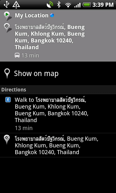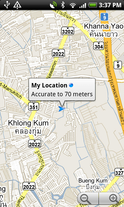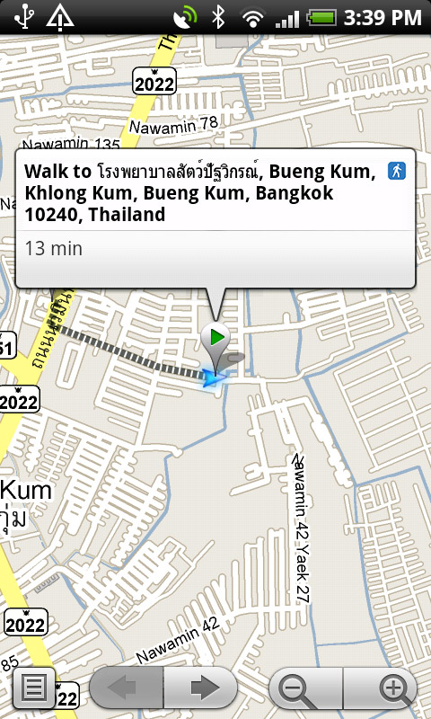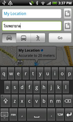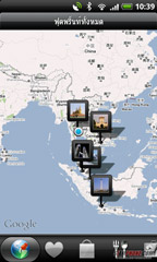 แสดงแผนที่พร้อมบอกตำแหน่งปัจจุบันของคุณ (ต้องเปิดใช่งาน GPS)