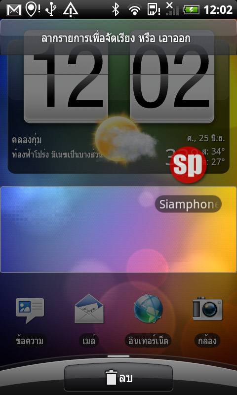หากแตะเลือกที่หน้าจอค้างไว้จะสามารถลากย้ายไอคอนต่าง ๆ ได้อย่างอิสระ